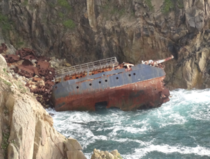 Die ganze Küste hier ist voller Wracks. Kann man sich gut vorstellen, bei den vielen vorgelagerten Riffs und Klippen, dass die Seefahrer es nicht leicht hatten. Gut für die Einheimischen, die haben teils davon gelebt, die Wracks auszuräumen oder das Treibgut einzusammeln.Von einem Dampfer sind noch Reste zu sehen.