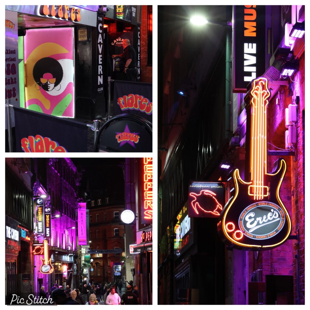 Nach dem türkischen Essen auf dem Heimweg standen wir plötzlich vor dem berühmten Cavern Club. Der legendäre Club in dem die Beatles ihre ersten Auftritte hatten. Eine laute Straße mit Pubs, Clubs und alles irgendwie der Rockmusik verbunden (und dem Saufen und dem Geld)