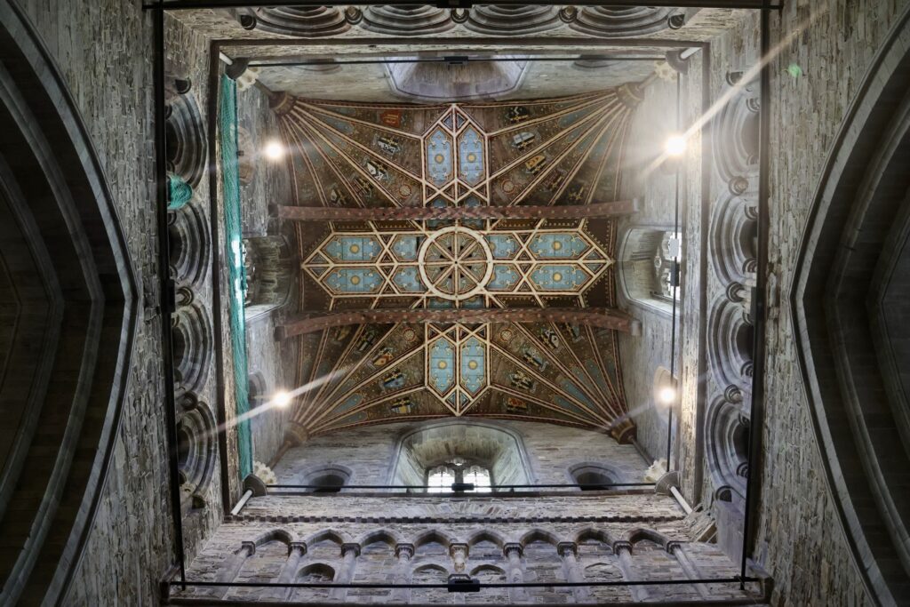 Eindrucksvolle Decken, viele Grabmal. Besonders die Decke des hohen quadratischen Turms. Das ist ungewöhnlich.